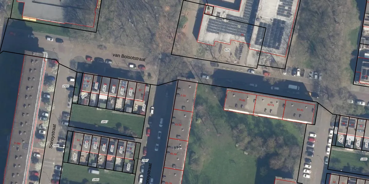 Sonoystraat 13 is gelegen op kadastraal perceel VDG00H1554. Deze kadastrale aanduiding is uniek en wordt gebruikt door het Kadaster om eigendomsrechten en andere zakelijke rechten vast te leggen. Het perceel maakt onderdeel uit van de kadastrale gemeente Vlaardingen.