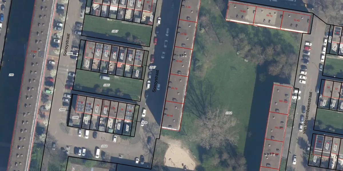 Het perceel waarop Sonoystraat 75 staat heeft een oppervlakte van 1,0 ha. Dit is een zeer groot perceel. De perceeloppervlakte wordt geregistreerd door het Kadaster. Gedetailleerde informatie over de maten van dit perceel kunt u vinden in het rapport Kadastrale kaart met maatvoering van Sonoystraat 75.