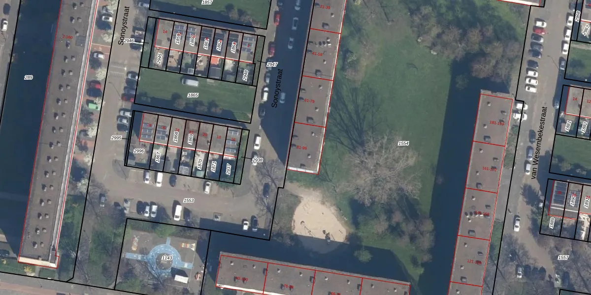Sonoystraat 87 is gelegen op kadastraal perceel VDG00H1554. Deze kadastrale aanduiding is uniek en wordt gebruikt door het Kadaster om eigendomsrechten en andere zakelijke rechten vast te leggen. Het perceel maakt onderdeel uit van de kadastrale gemeente Vlaardingen.