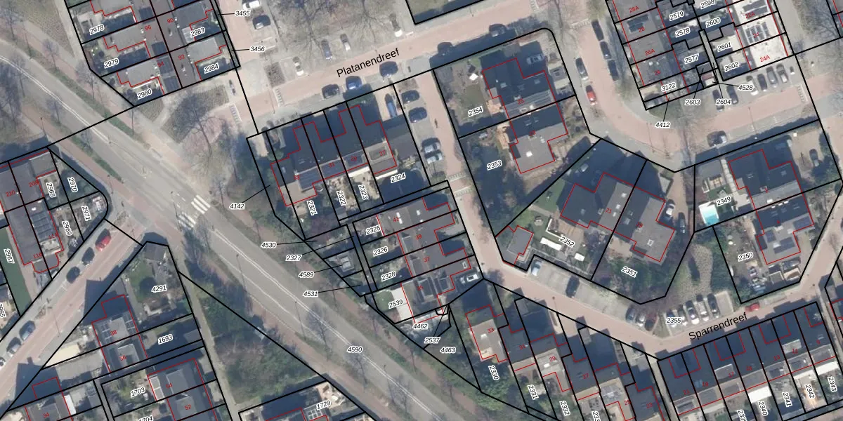 Sparrendreef 41 is gelegen op kadastraal perceel VDG00K2325. Deze kadastrale aanduiding is uniek en wordt gebruikt door het Kadaster om eigendomsrechten en andere zakelijke rechten vast te leggen. Het perceel maakt onderdeel uit van de kadastrale gemeente Vlaardingen.