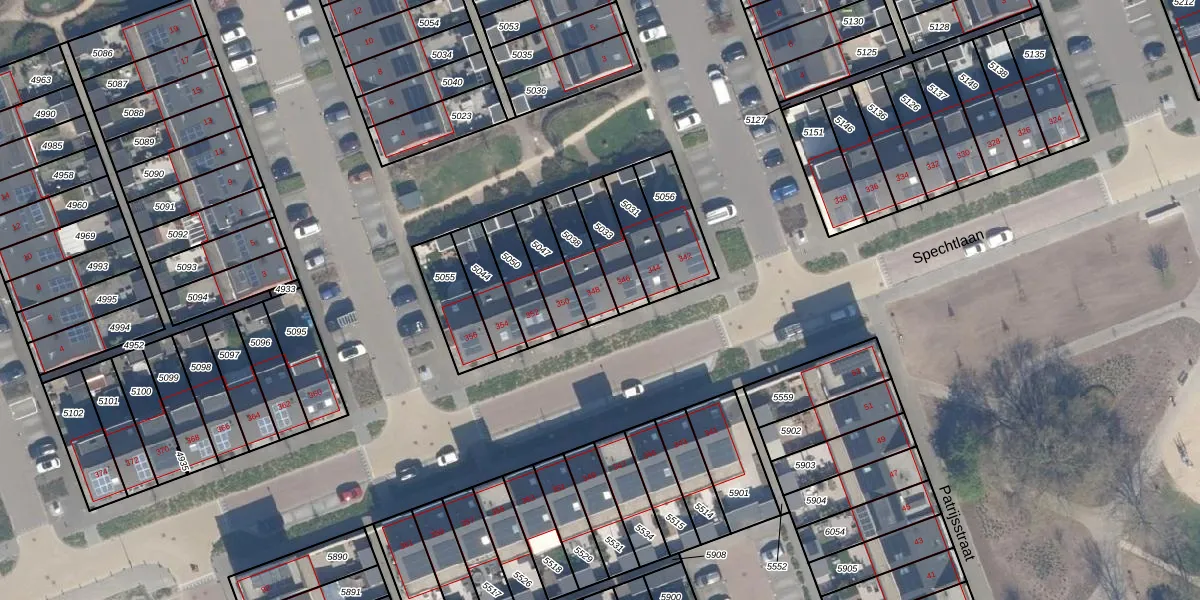Spechtlaan 348 is gelegen op kadastraal perceel VDG00K5038. Deze kadastrale aanduiding is uniek en wordt gebruikt door het Kadaster om eigendomsrechten en andere zakelijke rechten vast te leggen. Het perceel maakt onderdeel uit van de kadastrale gemeente Vlaardingen.