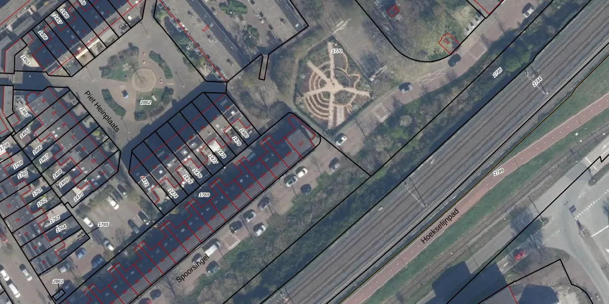 Het perceel waarop Spoorsingel 107 staat heeft een oppervlakte van 1500 m². Dit is een zeer groot perceel. De perceeloppervlakte wordt geregistreerd door het Kadaster. Gedetailleerde informatie over de maten van dit perceel kunt u vinden in het rapport Kadastrale kaart met maatvoering van Spoorsingel 107.