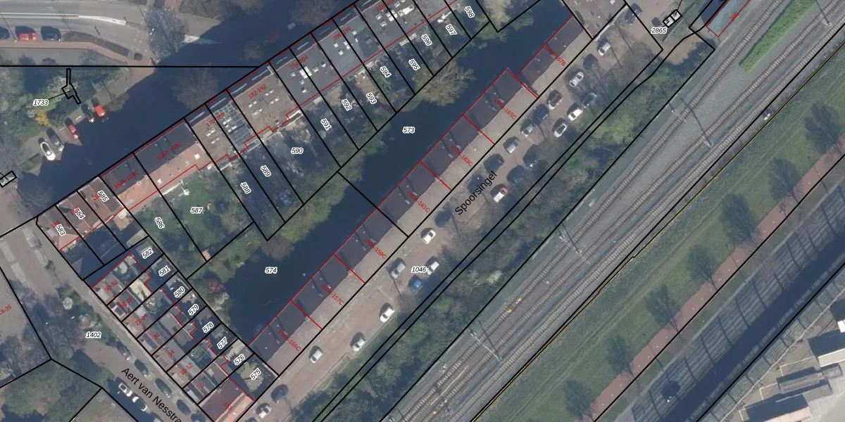 Het perceel waarop Spoorsingel 160-A staat heeft een oppervlakte van 1324 m². Dit is een zeer groot perceel. De perceeloppervlakte wordt geregistreerd door het Kadaster. Gedetailleerde informatie over de maten van dit perceel kunt u vinden in het rapport Kadastrale kaart met maatvoering van Spoorsingel 160-A.