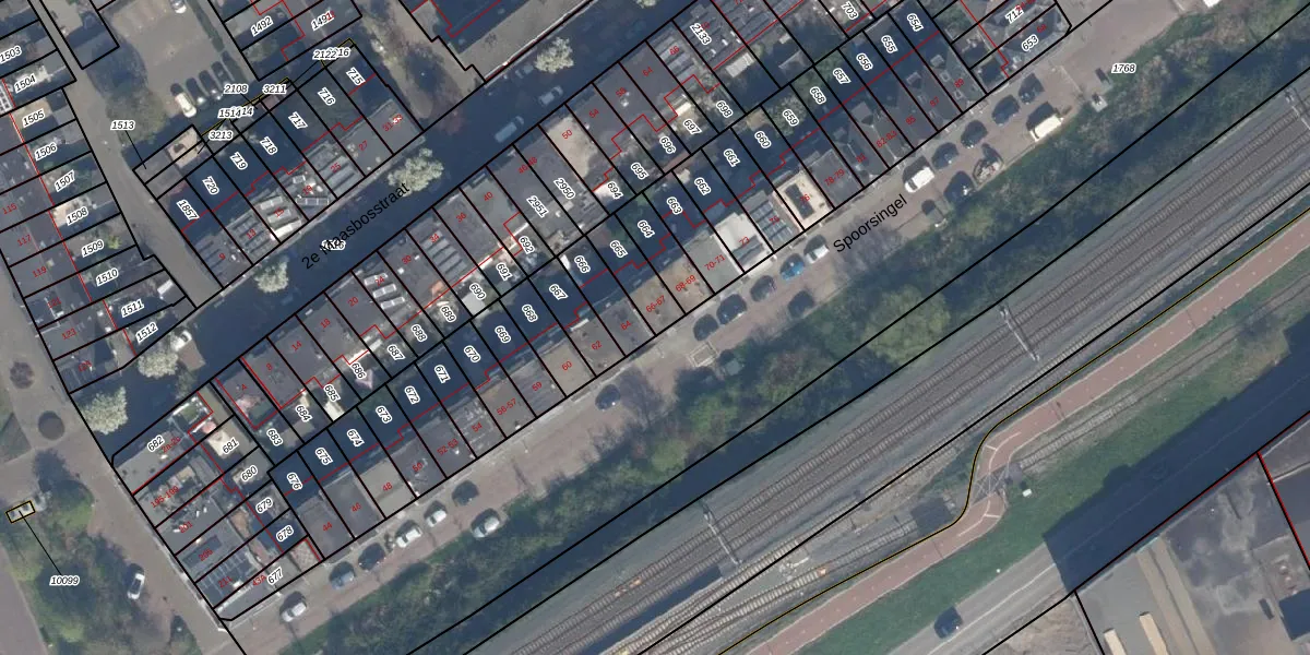 Het perceel waarop Spoorsingel 66 staat heeft een oppervlakte van 103 m². Dit is een middelgroot perceel. De perceeloppervlakte wordt geregistreerd door het Kadaster. Gedetailleerde informatie over de maten van dit perceel kunt u vinden in het rapport Kadastrale kaart met maatvoering van Spoorsingel 66.