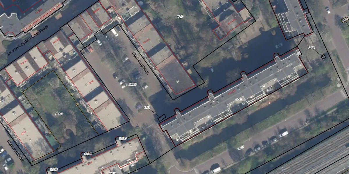 Sprinterplaats 110 is gelegen op kadastraal perceel VDG00B9240. Deze kadastrale aanduiding is uniek en wordt gebruikt door het Kadaster om eigendomsrechten en andere zakelijke rechten vast te leggen. Het perceel maakt onderdeel uit van de kadastrale gemeente Vlaardingen.