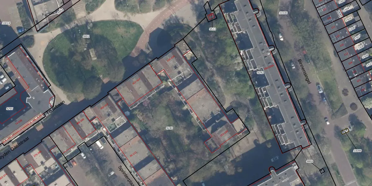 Het adres ligt op het perceel VDG00-B-9240, dat zich in de kadastrale gemeente Vlaardingen bevindt. Het perceel is met 4500 m² relatief groot. Het gemiddelde ligt in de kadastrale gemeente Vlaardingen op 1372,52 m². De grootste perceeloppervlakte in de kadastrale gemeente is 1,02 km². De kleinste oppervlakte bedraagt 0 m². Er zijn 59 adressen aanwezig op het perceel. De huidige grenzen van het perceel zijn digitaal in de Basisregistratie Kadaster (BRK) geregistreerd op 15-05-2009.