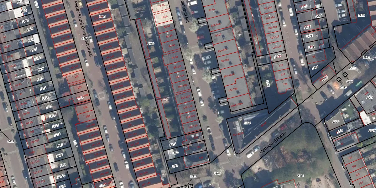 Het adres ligt op het perceel VDG00-M-1782, dat zich in de kadastrale gemeente Vlaardingen bevindt. De gemiddelde perceeloppervlakte in de kadastrale gemeente Vlaardingen is 1372,52 m². Dit perceel is met zijn 2235 m² dus groter dan gemiddeld. Het kleinste perceel in de kadastrale gemeente is 0 m² groot. De grootste perceeloppervlakte is 1,02 km². Op het perceel zijn 40 adressen aanwezig. De huidige grenzen van het perceel zijn digitaal in de Basisregistratie Kadaster (BRK) geregistreerd op 16-04-2008.