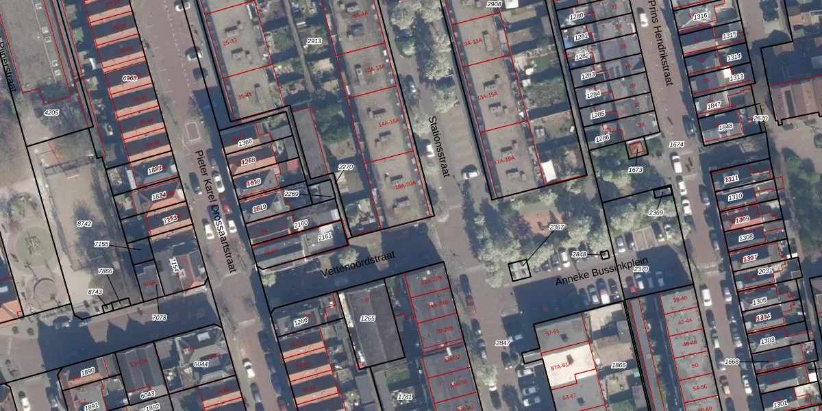 Het perceel waarop Stationsstraat 18-D staat heeft een oppervlakte van 2960 m². Dit is een zeer groot perceel. De perceeloppervlakte wordt geregistreerd door het Kadaster. Gedetailleerde informatie over de maten van dit perceel kunt u vinden in het rapport Kadastrale kaart met maatvoering van Stationsstraat 18-D.