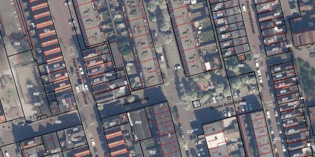Het perceel waarop Stationsstraat 20-A staat heeft een oppervlakte van 2960 m². Dit is een zeer groot perceel. De perceeloppervlakte wordt geregistreerd door het Kadaster. Gedetailleerde informatie over de maten van dit perceel kunt u vinden in het rapport Kadastrale kaart met maatvoering van Stationsstraat 20-A.