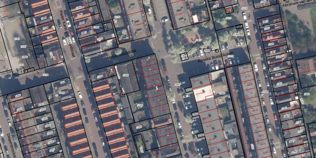 Het adres ligt op het perceel VDG00-M-1781, dat zich in de kadastrale gemeente Vlaardingen bevindt. Het perceel is kleiner dan gemiddeld in Vlaardingen. Het perceel is 750 m² groot, terwijl het gemiddelde ligt op 1372,52 m². Het kleinste perceel in de kadastrale gemeente is 0 m² groot. De grootste perceeloppervlakte is 1,02 km². Op het perceel liggen in totaal 17 adressen. In de Basisregistratie Kadaster (BRK) werden de grenzen van het perceel geregistreerd op 16-04-2008.