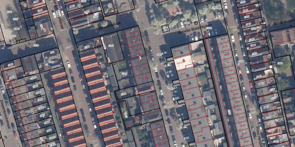 Het adres ligt op het perceel VDG00-M-1781, dat zich in de kadastrale gemeente Vlaardingen bevindt. Het perceel is kleiner dan gemiddeld in Vlaardingen. Het perceel is 750 m² groot, terwijl het gemiddelde ligt op 1372,52 m². Het kleinste perceel in de kadastrale gemeente is 0 m² groot. De grootste perceeloppervlakte is 1,02 km². Er zijn 17 adressen aanwezig op het perceel. De laatste wijziging in het de Basisregistratie Kadaster (BRK) was op 16-04-2008.