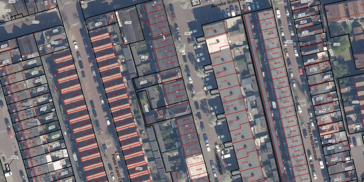 Het perceel waarop Stationsstraat 50 staat heeft een oppervlakte van 2235 m². Dit is een zeer groot perceel. De perceeloppervlakte wordt geregistreerd door het Kadaster. Gedetailleerde informatie over de maten van dit perceel kunt u vinden in het rapport Kadastrale kaart met maatvoering van Stationsstraat 50.