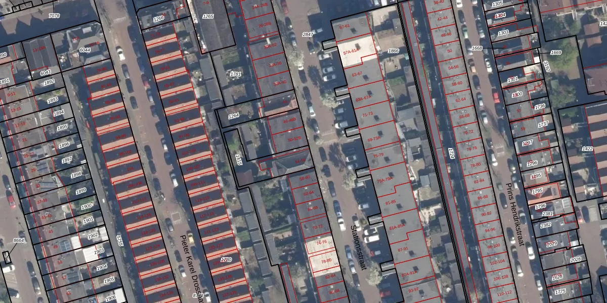 Stationsstraat 54 is gelegen op kadastraal perceel VDG00M1415. Deze kadastrale aanduiding is uniek en wordt gebruikt door het Kadaster om eigendomsrechten en andere zakelijke rechten vast te leggen. Het perceel maakt onderdeel uit van de kadastrale gemeente Vlaardingen.
