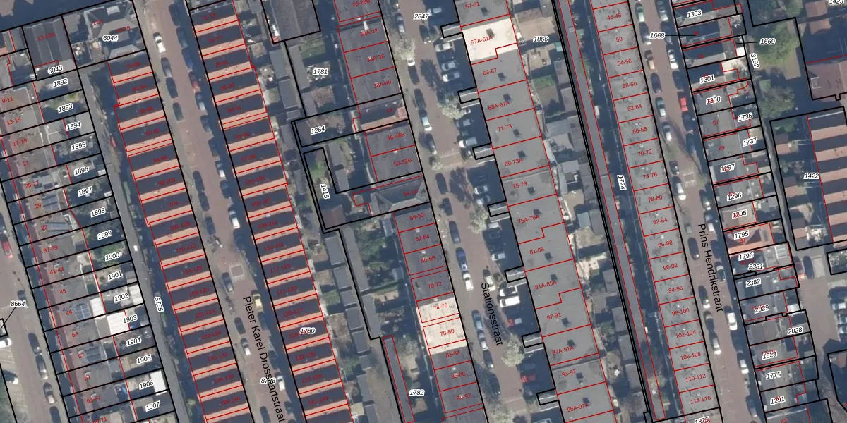 Het perceel waarop Stationsstraat 58 staat heeft een oppervlakte van 2235 m². Dit is een zeer groot perceel. De perceeloppervlakte wordt geregistreerd door het Kadaster. Gedetailleerde informatie over de maten van dit perceel kunt u vinden in het rapport Kadastrale kaart met maatvoering van Stationsstraat 58.