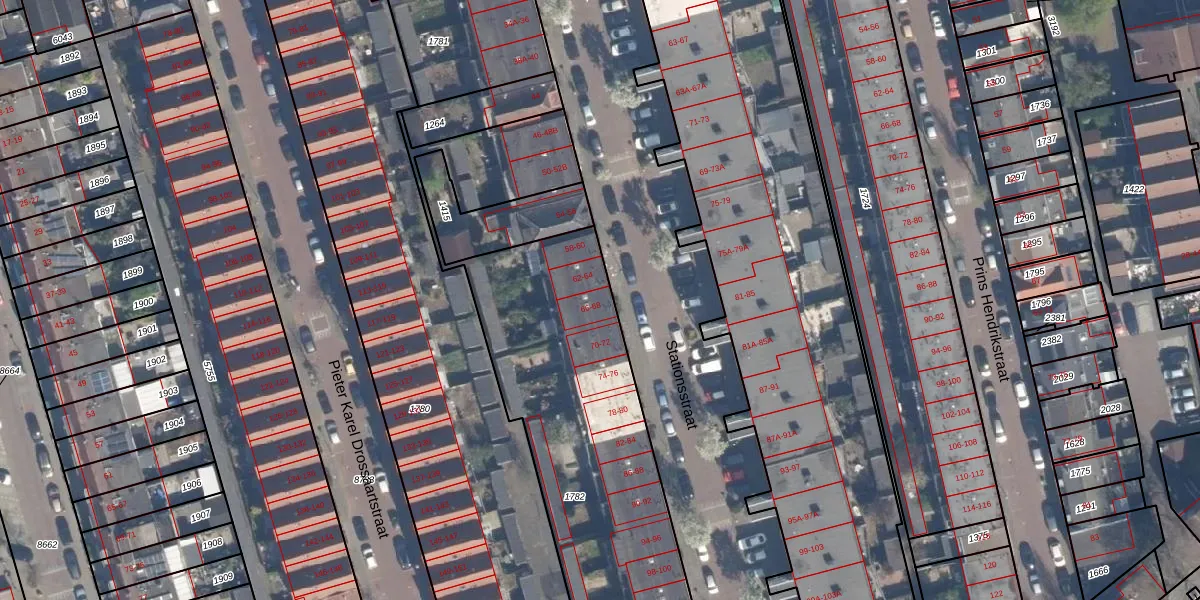 Het perceel waarop Stationsstraat 66 staat heeft een oppervlakte van 2235 m². Dit is een zeer groot perceel. De perceeloppervlakte wordt geregistreerd door het Kadaster. Gedetailleerde informatie over de maten van dit perceel kunt u vinden in het rapport Kadastrale kaart met maatvoering van Stationsstraat 66.