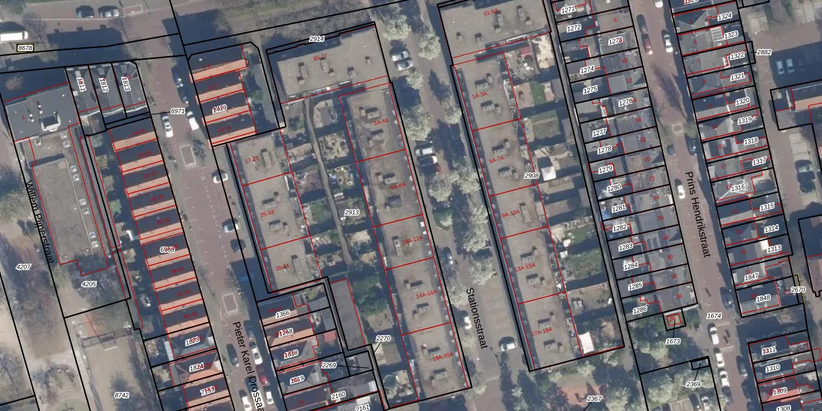 Het perceel waarop Stationsstraat 8-A staat heeft een oppervlakte van 2960 m². Dit is een zeer groot perceel. De perceeloppervlakte wordt geregistreerd door het Kadaster. Gedetailleerde informatie over de maten van dit perceel kunt u vinden in het rapport Kadastrale kaart met maatvoering van Stationsstraat 8-A.