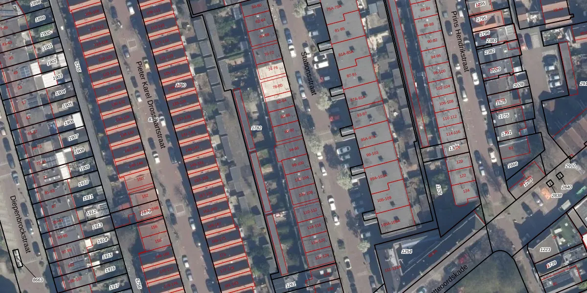 Stationsstraat 96 is gelegen op kadastraal perceel VDG00M1782. Deze kadastrale aanduiding is uniek en wordt gebruikt door het Kadaster om eigendomsrechten en andere zakelijke rechten vast te leggen. Het perceel maakt onderdeel uit van de kadastrale gemeente Vlaardingen.