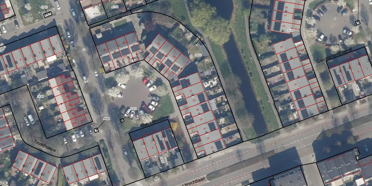 Het perceel waarop Staverenhoeve 22 staat heeft een oppervlakte van 2700 m². Dit is een zeer groot perceel. De perceeloppervlakte wordt geregistreerd door het Kadaster. Gedetailleerde informatie over de maten van dit perceel kunt u vinden in het rapport Kadastrale kaart met maatvoering van Staverenhoeve 22.
