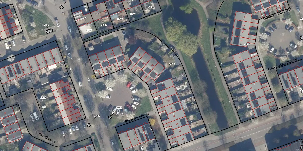 Het perceel waarop Staverenhoeve 26 staat heeft een oppervlakte van 2700 m². Dit is een zeer groot perceel. De perceeloppervlakte wordt geregistreerd door het Kadaster. Gedetailleerde informatie over de maten van dit perceel kunt u vinden in het rapport Kadastrale kaart met maatvoering van Staverenhoeve 26.