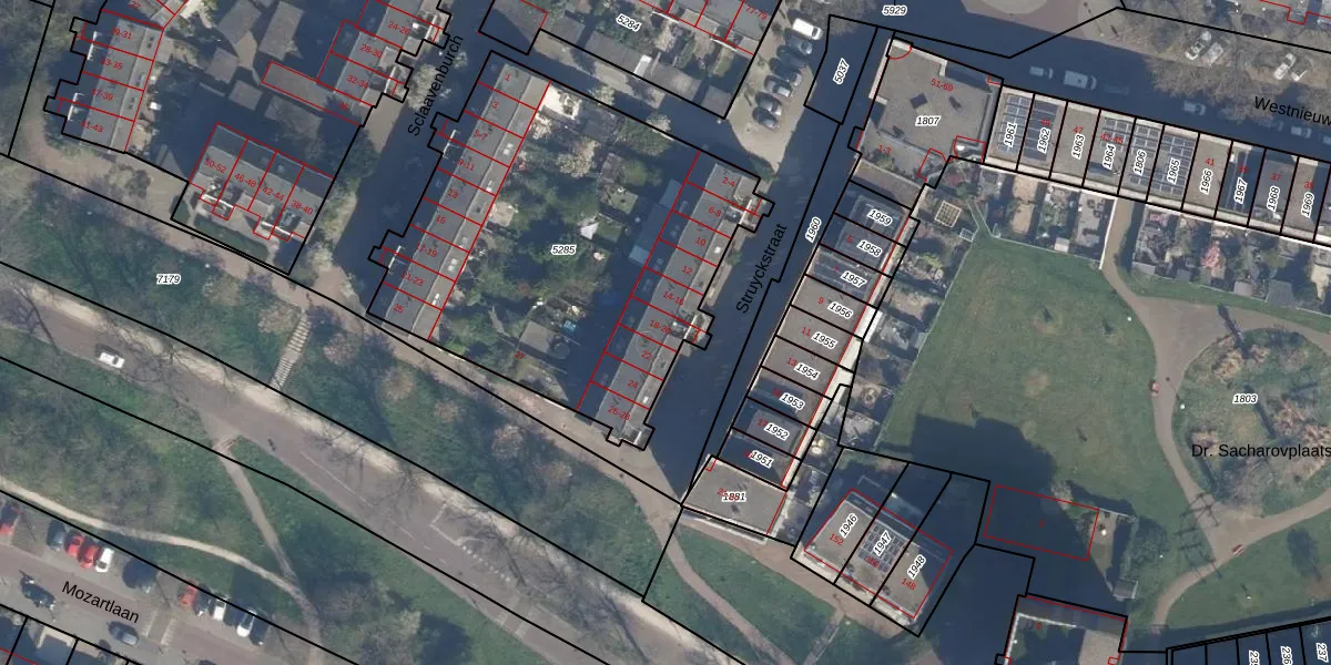 Het perceel waarop Struyckstraat 18 staat heeft een oppervlakte van 2039 m². Dit is een zeer groot perceel. De perceeloppervlakte wordt geregistreerd door het Kadaster. Gedetailleerde informatie over de maten van dit perceel kunt u vinden in het rapport Kadastrale kaart met maatvoering van Struyckstraat 18.
