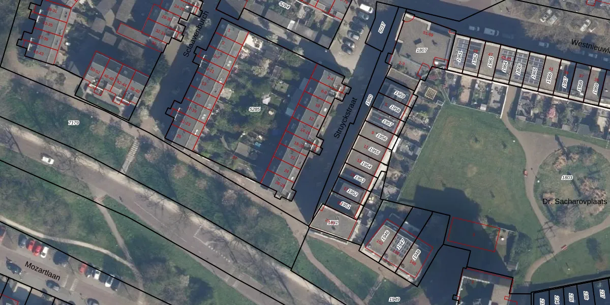 Het perceel waarop Struyckstraat 20 staat heeft een oppervlakte van 2039 m². Dit is een zeer groot perceel. De perceeloppervlakte wordt geregistreerd door het Kadaster. Gedetailleerde informatie over de maten van dit perceel kunt u vinden in het rapport Kadastrale kaart met maatvoering van Struyckstraat 20.