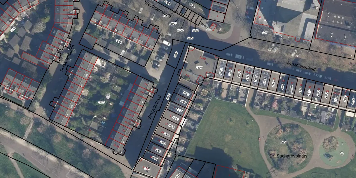 Gebruik de zoekbalk of klik op een perceel voor informatie over de adressen binnen dit perceel.