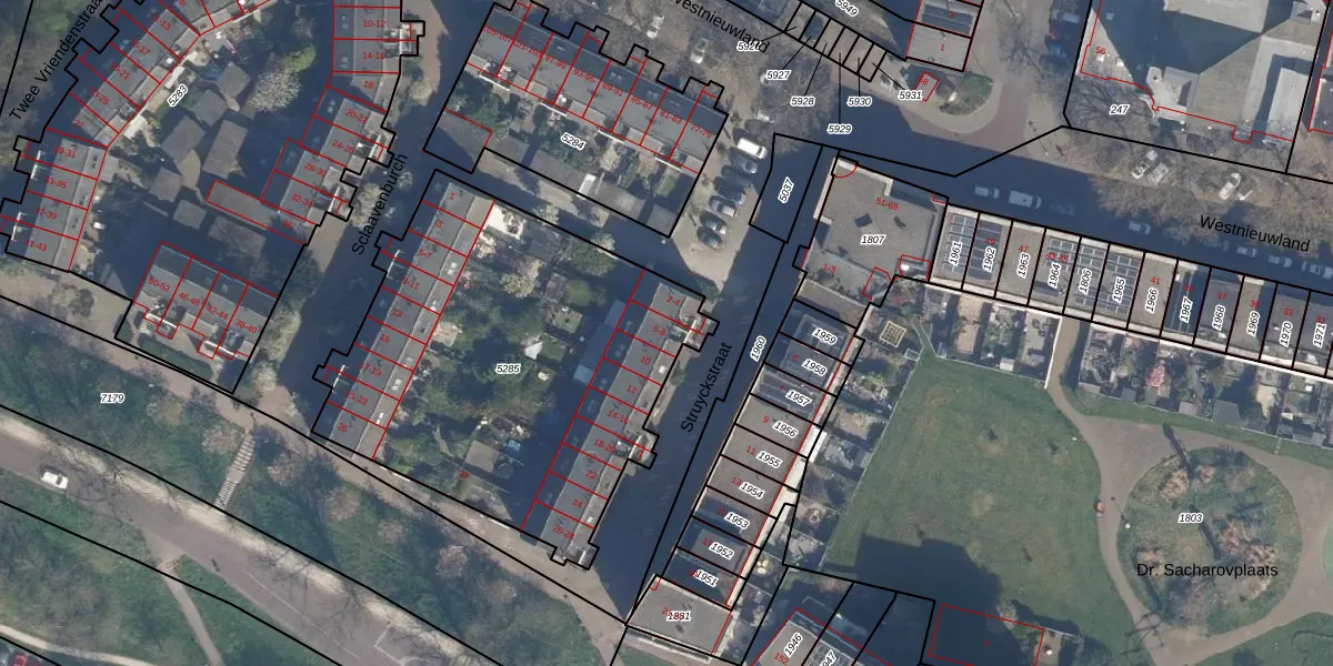 Het perceel waarop Struyckstraat 6 staat heeft een oppervlakte van 2039 m². Dit is een zeer groot perceel. De perceeloppervlakte wordt geregistreerd door het Kadaster. Gedetailleerde informatie over de maten van dit perceel kunt u vinden in het rapport Kadastrale kaart met maatvoering van Struyckstraat 6.