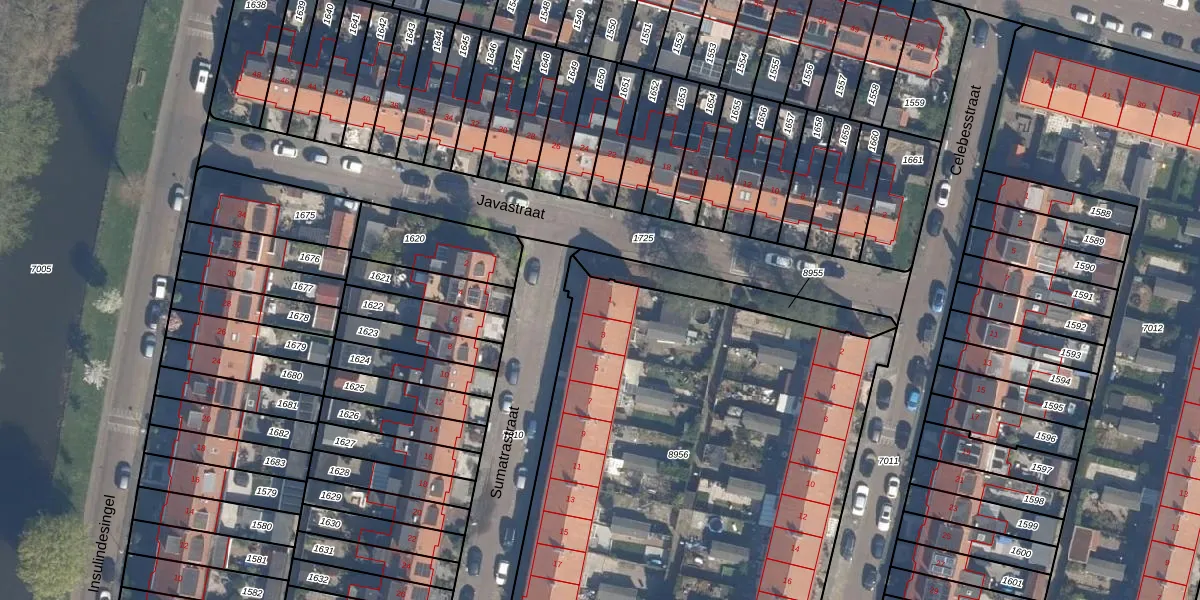 Het perceel waarop Sumatrastraat 1 staat heeft een oppervlakte van 3102 m². Dit is een zeer groot perceel. De perceeloppervlakte wordt geregistreerd door het Kadaster. Gedetailleerde informatie over de maten van dit perceel kunt u vinden in het rapport Kadastrale kaart met maatvoering van Sumatrastraat 1.