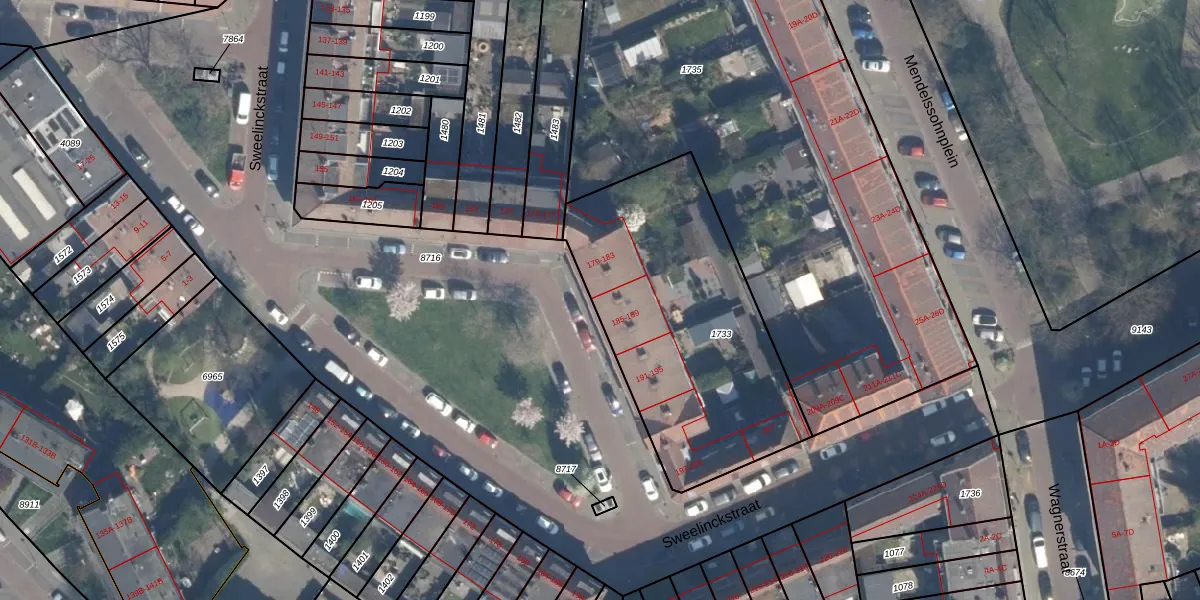 Sweelinckstraat 185 is gelegen op kadastraal perceel VDG00D1733. Deze kadastrale aanduiding is uniek en wordt gebruikt door het Kadaster om eigendomsrechten en andere zakelijke rechten vast te leggen. Het perceel maakt onderdeel uit van de kadastrale gemeente Vlaardingen.