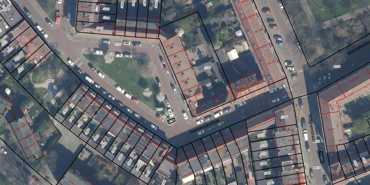 Sweelinckstraat 197 is gelegen op kadastraal perceel VDG00D1733. Deze kadastrale aanduiding is uniek en wordt gebruikt door het Kadaster om eigendomsrechten en andere zakelijke rechten vast te leggen. Het perceel maakt onderdeel uit van de kadastrale gemeente Vlaardingen.