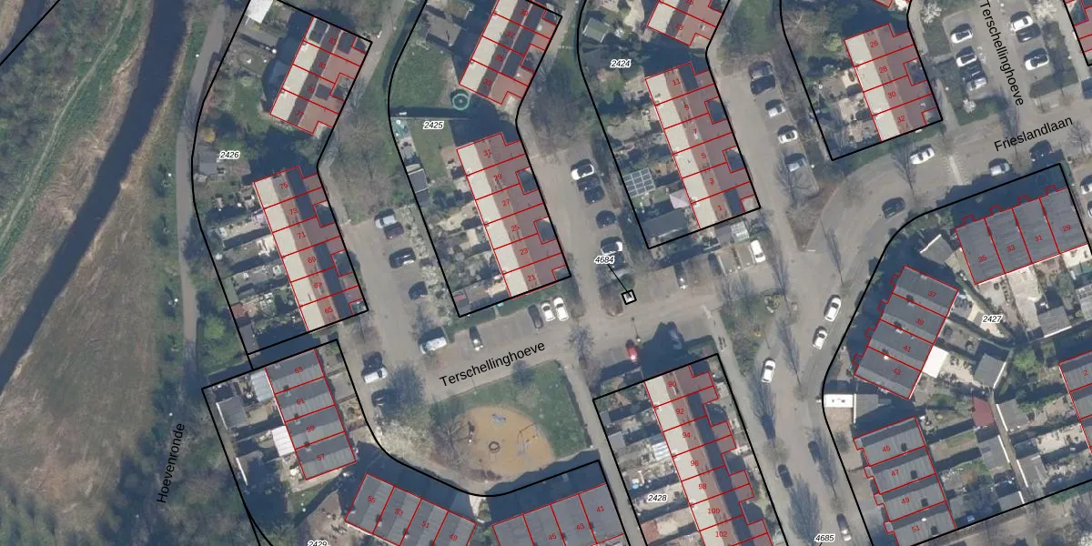 Terschellinghoeve 21 is gelegen op kadastraal perceel VDG00K2425. Deze kadastrale aanduiding is uniek en wordt gebruikt door het Kadaster om eigendomsrechten en andere zakelijke rechten vast te leggen. Het perceel maakt onderdeel uit van de kadastrale gemeente Vlaardingen.