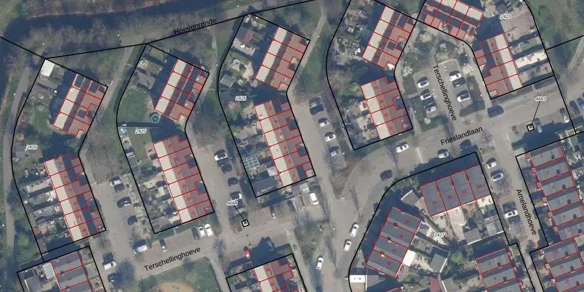 Terschellinghoeve 5 is gelegen op kadastraal perceel VDG00K2424. Deze kadastrale aanduiding is uniek en wordt gebruikt door het Kadaster om eigendomsrechten en andere zakelijke rechten vast te leggen. Het perceel maakt onderdeel uit van de kadastrale gemeente Vlaardingen.