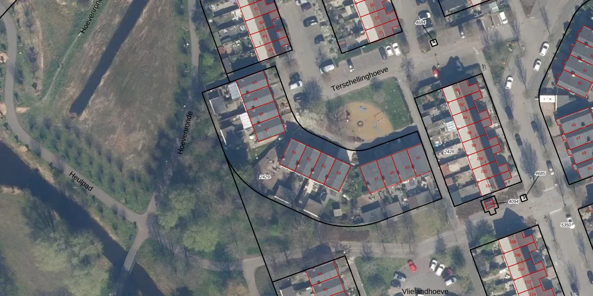 Terschellinghoeve 55 is gelegen op kadastraal perceel VDG00K2429. Deze kadastrale aanduiding is uniek en wordt gebruikt door het Kadaster om eigendomsrechten en andere zakelijke rechten vast te leggen. Het perceel maakt onderdeel uit van de kadastrale gemeente Vlaardingen.