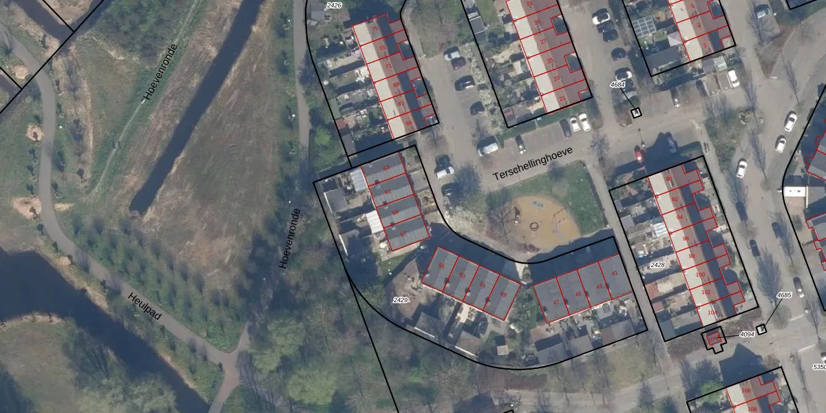 Het perceel waarop Terschellinghoeve 59 staat heeft een oppervlakte van 2180 m². Dit is een zeer groot perceel. De perceeloppervlakte wordt geregistreerd door het Kadaster. Gedetailleerde informatie over de maten van dit perceel kunt u vinden in het rapport Kadastrale kaart met maatvoering van Terschellinghoeve 59.