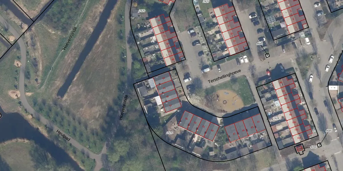 Het perceel waarop Terschellinghoeve 61 staat heeft een oppervlakte van 2180 m². Dit is een zeer groot perceel. De perceeloppervlakte wordt geregistreerd door het Kadaster. Gedetailleerde informatie over de maten van dit perceel kunt u vinden in het rapport Kadastrale kaart met maatvoering van Terschellinghoeve 61.