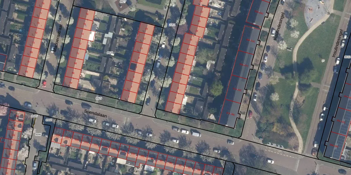 Het adres ligt op het perceel VDG00-D-8931, dat zich in de kadastrale gemeente Vlaardingen bevindt. De oppervlakte van het perceel is 5690 m². Dat is groter dan gemiddeld in Vlaardingen, waar de gemiddelde perceeloppervlakte op 1372,52 m² ligt. Het kleinste perceel in de kadastrale gemeente is 0 m² groot. De grootste perceeloppervlakte is 1,02 km². Er zijn 78 adressen aanwezig op het perceel. De huidige grenzen van het perceel zijn digitaal in de Basisregistratie Kadaster (BRK) geregistreerd op 04-06-2021.