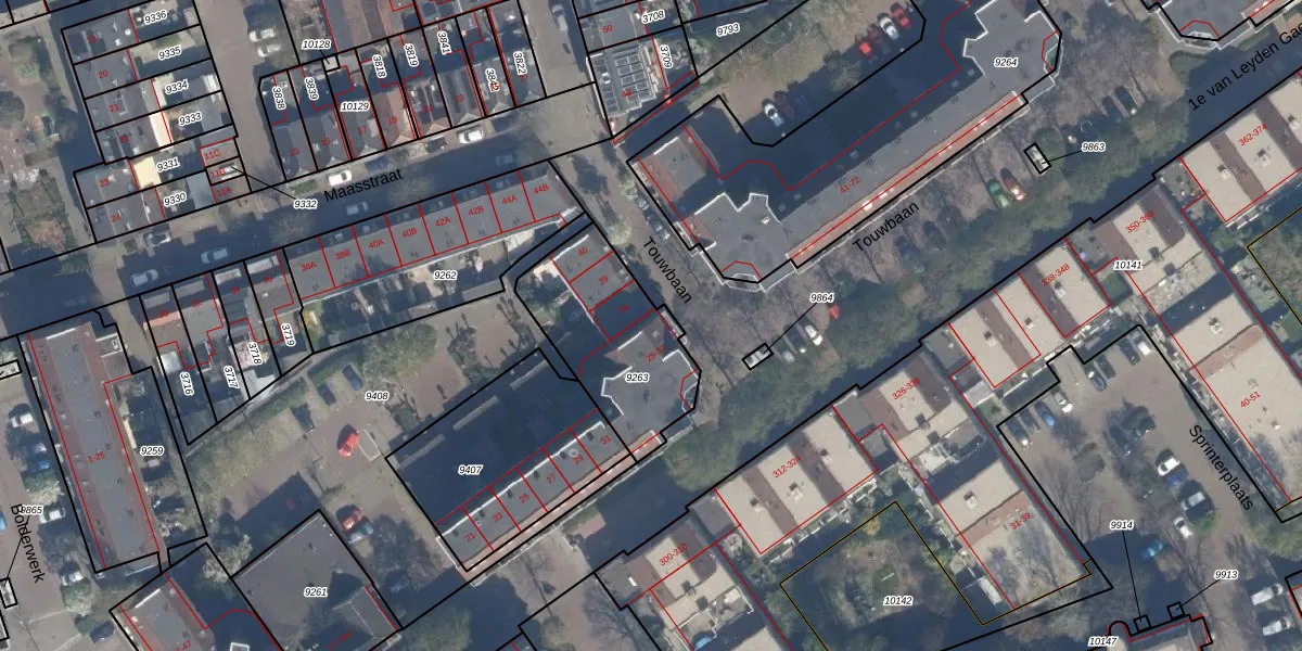 Touwbaan 32 is gelegen op kadastraal perceel VDG00B9263. Deze kadastrale aanduiding is uniek en wordt gebruikt door het Kadaster om eigendomsrechten en andere zakelijke rechten vast te leggen. Het perceel maakt onderdeel uit van de kadastrale gemeente Vlaardingen.