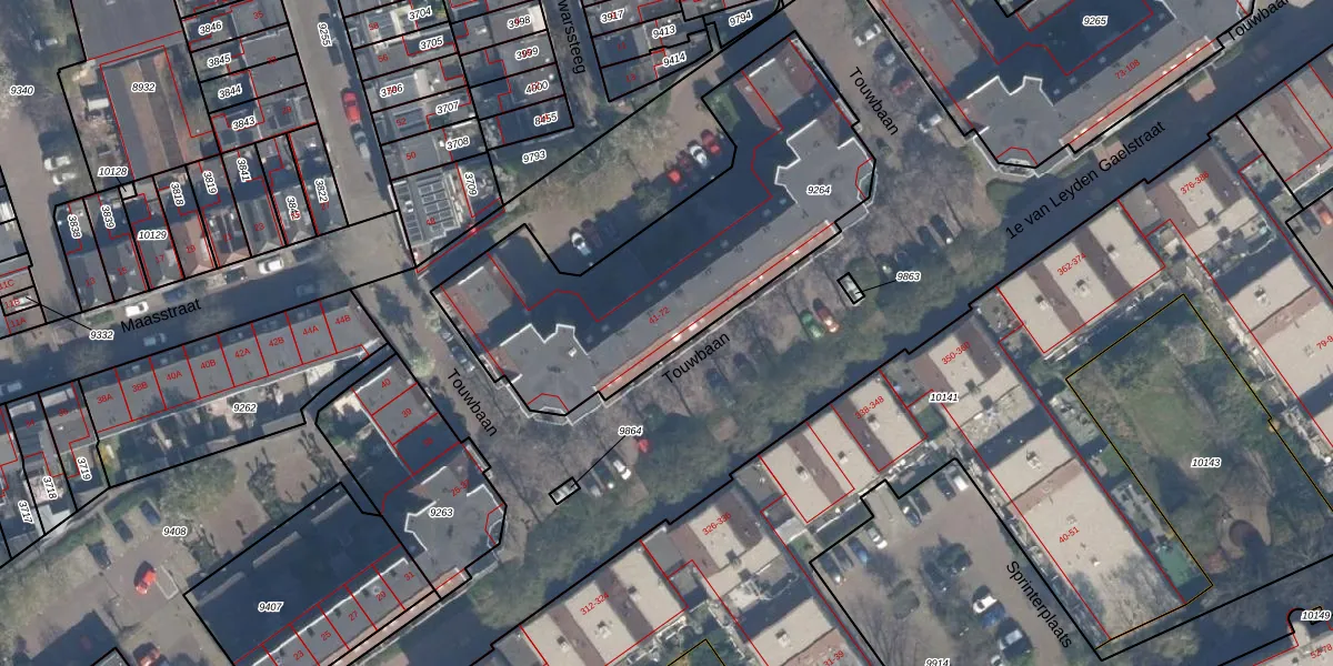 Touwbaan 55 is gelegen op kadastraal perceel VDG00B9264. Deze kadastrale aanduiding is uniek en wordt gebruikt door het Kadaster om eigendomsrechten en andere zakelijke rechten vast te leggen. Het perceel maakt onderdeel uit van de kadastrale gemeente Vlaardingen.