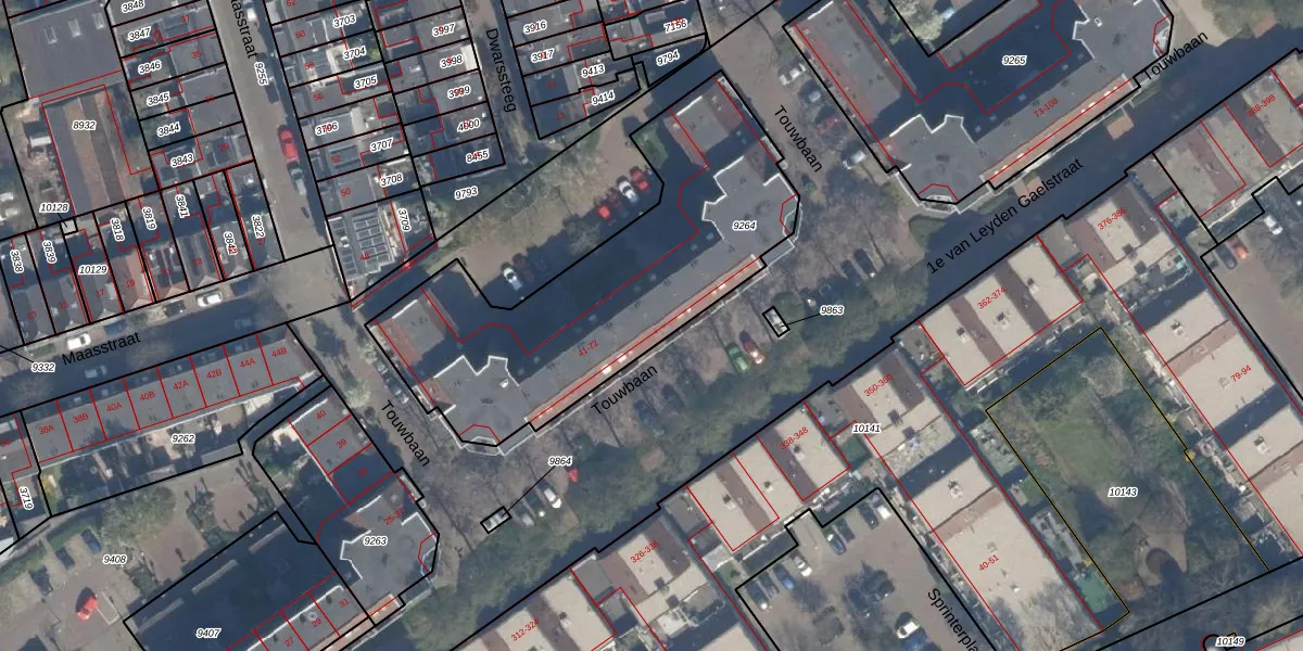 Touwbaan 57 is gelegen op kadastraal perceel VDG00B9264. Deze kadastrale aanduiding is uniek en wordt gebruikt door het Kadaster om eigendomsrechten en andere zakelijke rechten vast te leggen. Het perceel maakt onderdeel uit van de kadastrale gemeente Vlaardingen.
