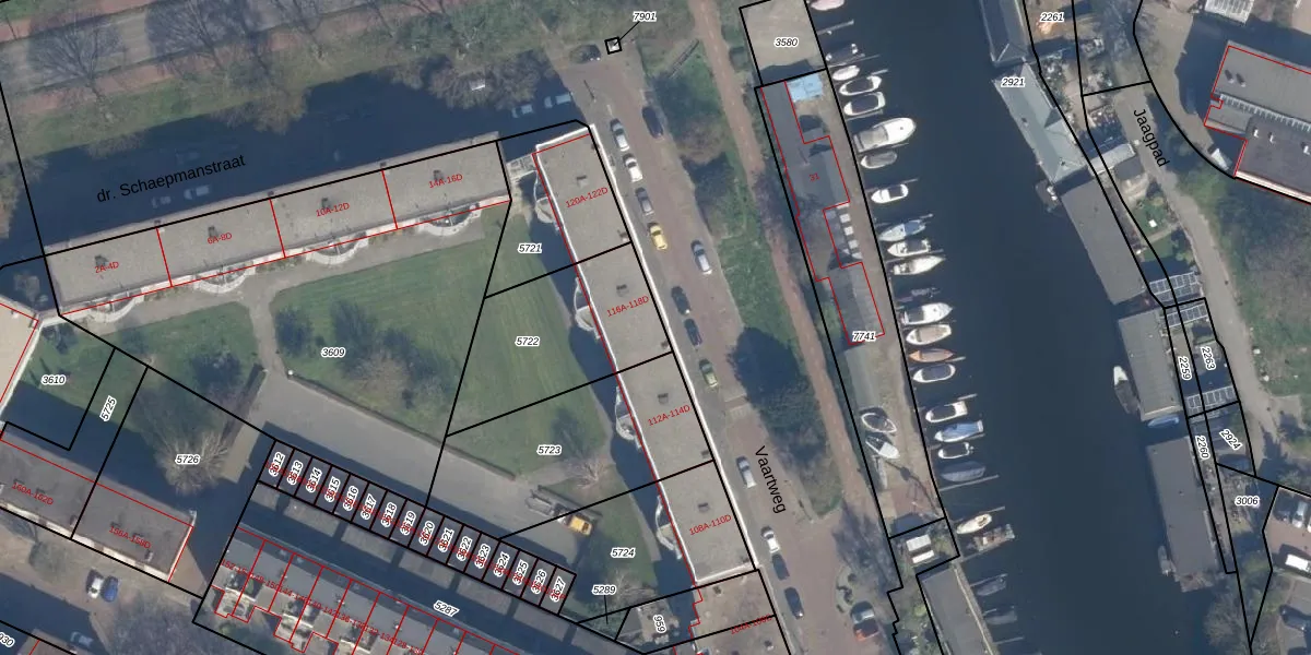 Vaartweg 116-A is gelegen op kadastraal perceel VDG00D5722. Deze kadastrale aanduiding is uniek en wordt gebruikt door het Kadaster om eigendomsrechten en andere zakelijke rechten vast te leggen. Het perceel maakt onderdeel uit van de kadastrale gemeente Vlaardingen.