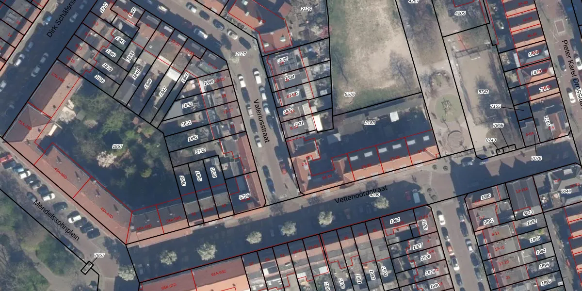 Valeriusstraat 6 is gelegen op kadastraal perceel VDG00D2183. Deze kadastrale aanduiding is uniek en wordt gebruikt door het Kadaster om eigendomsrechten en andere zakelijke rechten vast te leggen. Het perceel maakt onderdeel uit van de kadastrale gemeente Vlaardingen.