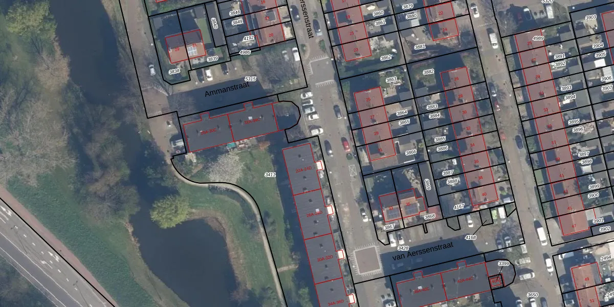 Het perceel waarop van Aerssenstraat 22-C staat heeft een oppervlakte van 2420 m². Dit is een zeer groot perceel. De perceeloppervlakte wordt geregistreerd door het Kadaster. Gedetailleerde informatie over de maten van dit perceel kunt u vinden in het rapport Kadastrale kaart met maatvoering van van Aerssenstraat 22-C.
