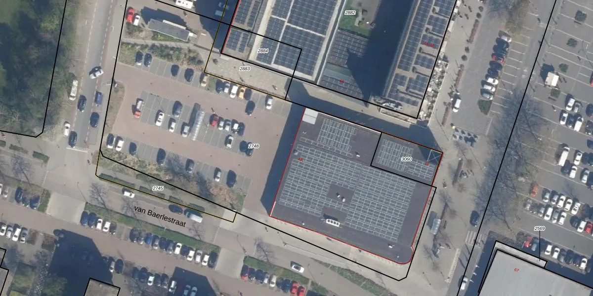 Het perceel waarop van Baerlestraat 4-A staat heeft een oppervlakte van 5057 m². Dit is een zeer groot perceel. De perceeloppervlakte wordt geregistreerd door het Kadaster. Gedetailleerde informatie over de maten van dit perceel kunt u vinden in het rapport Kadastrale kaart met maatvoering van van Baerlestraat 4-A.