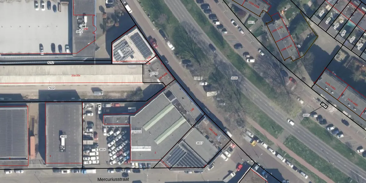 Het perceel waarop het adres ligt is VDG00-D-3816. De afkorting 'VDG00' staat voor kadastrale gemeente Vlaardingen. De oppervlakte van het perceel is 2164 m². Dat is groter dan gemiddeld in Vlaardingen, waar de gemiddelde perceeloppervlakte op 1372,52 m² ligt. Het grootste perceel in de kadastrale gemeente is 1,02 km². Het kleinste perceel heeft een oppervlakte van 0 m². Op het perceel liggen in totaal 18 adressen. In de Basisregistratie Kadaster (BRK) werden de grenzen van het perceel geregistreerd op 21-07-2008.