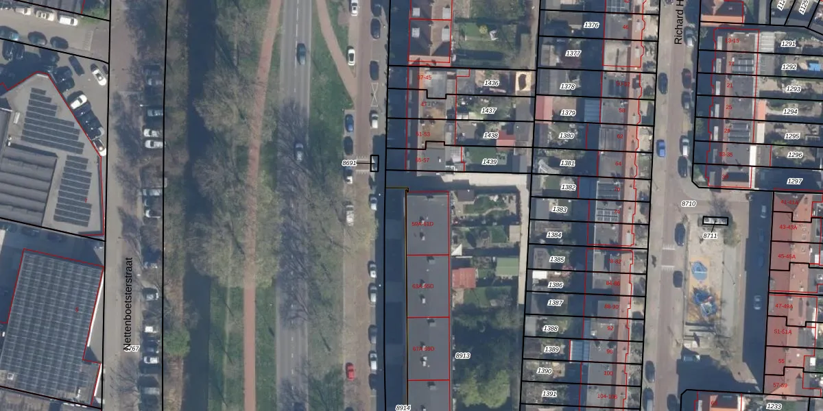 Het adres ligt op het perceel VDG00-D-8913, dat zich in de kadastrale gemeente Vlaardingen bevindt. De gemiddelde perceeloppervlakte in de kadastrale gemeente Vlaardingen is 1372,52 m². Dit perceel is met zijn 2621 m² dus groter dan gemiddeld. Het grootste perceel in de kadastrale gemeente is 1,02 km². Het kleinste perceel heeft een oppervlakte van 0 m². Er zijn 48 adressen aanwezig op het perceel. De laatste wijziging in het de Basisregistratie Kadaster (BRK) was op 31-10-2019.