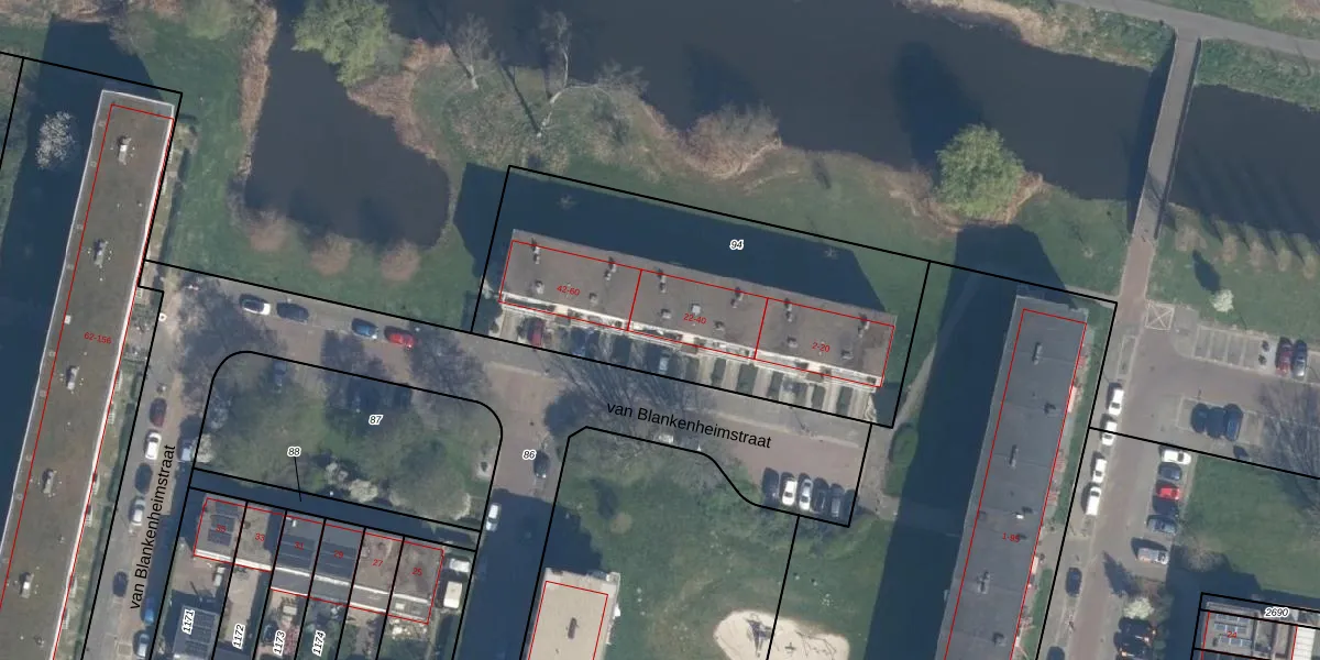 Het perceel waarop van Blankenheimstraat 30 staat heeft een oppervlakte van 1696 m². Dit is een zeer groot perceel. De perceeloppervlakte wordt geregistreerd door het Kadaster. Gedetailleerde informatie over de maten van dit perceel kunt u vinden in het rapport Kadastrale kaart met maatvoering van van Blankenheimstraat 30.