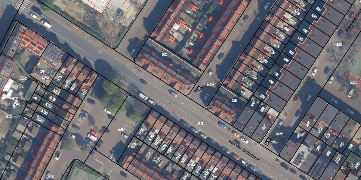 Het perceel waarop van der Driftstraat 62 staat heeft een oppervlakte van 605 m². Dit is een groot perceel. De perceeloppervlakte wordt geregistreerd door het Kadaster. Gedetailleerde informatie over de maten van dit perceel kunt u vinden in het rapport Kadastrale kaart met maatvoering van van der Driftstraat 62.