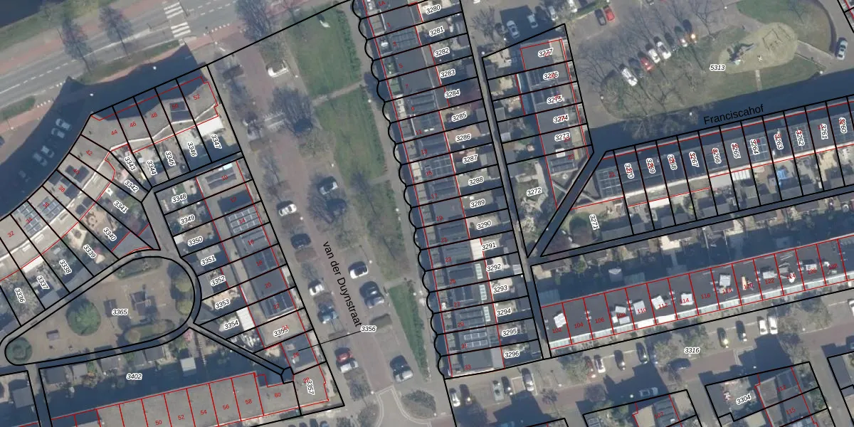 van der Duynstraat 19 is gelegen op kadastraal perceel VDG00G3289. Deze kadastrale aanduiding is uniek en wordt gebruikt door het Kadaster om eigendomsrechten en andere zakelijke rechten vast te leggen. Het perceel maakt onderdeel uit van de kadastrale gemeente Vlaardingen.