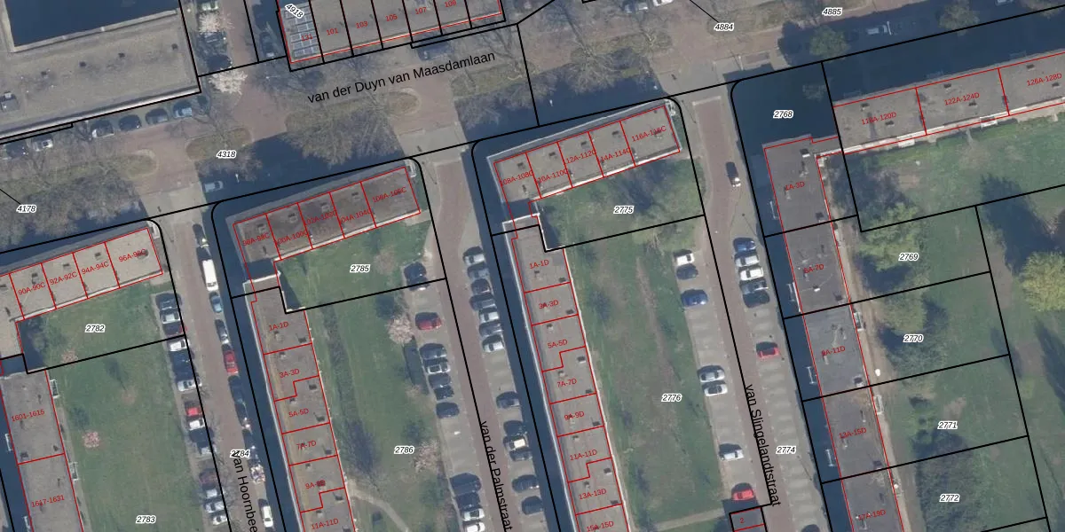 Het adres is gelegen op perceel 2776 in de sectie G en de kadastrale gemeente Vlaardingen. De kadastrale aanduiding is aldus VDG00-G-2776. Het perceel is met 3246 m² relatief groot. Het gemiddelde ligt in de kadastrale gemeente Vlaardingen op 1372,24 m². Het grootste perceel in de kadastrale gemeente is 1,02 km². Het kleinste perceel heeft een oppervlakte van 0 m². Op het perceel liggen in totaal 48 adressen. De laatste wijziging in het de Basisregistratie Kadaster (BRK) was op 14-07-2010.