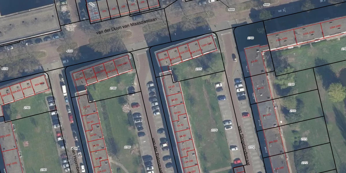 Het adres is gelegen op perceel 2776 in de sectie G en de kadastrale gemeente Vlaardingen. De kadastrale aanduiding is aldus VDG00-G-2776. Het perceel is met 3246 m² relatief groot. Het gemiddelde ligt in de kadastrale gemeente Vlaardingen op 1372,24 m². Het grootste perceel in de kadastrale gemeente is 1,02 km². Het kleinste perceel heeft een oppervlakte van 0 m². Op het perceel liggen in totaal 48 adressen. De huidige grenzen van het perceel zijn digitaal in de Basisregistratie Kadaster (BRK) geregistreerd op 14-07-2010.